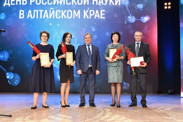 За многолетний добросовестный труд и в связи с празднованием Дня российской науки спикер АКЗС вручил награды краевого Засобрания главному инженеру отдела сопровождения научных договоров, проектов и программ Алтайского государственного технического университета им. И.И. Ползунова Алексею Кузьмину; доценту кафедры фармакологии Алтайского государственного медицинского университета Олесе Макаровой; ведущему научному сотруднику лаборатории гидробиологии Института водных и экологических проблем Сибирского отделения РАН Любови Яныгиной и профессору кафедры востоковедения Алтайского государственного университета Юлии Лысенко.