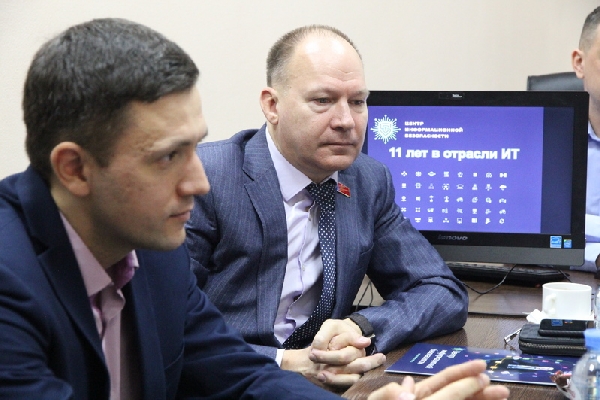 Председатель Алтайского краевого Законодательного Собрания Александр Романенко и члены комитета по экономической политике, промышленности и предпринимательству Дмитрий Аганов, Александр Демин, Анатолий Суворов, Людмила Суслова 6 февраля встретились с руководством барнаульской ИТ-компании «Центр информационной безопасности». На встрече присутствовал министр цифрового развития Алтайского края Евгений Зрюмов.