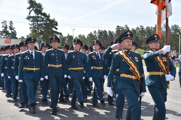 После этого по площади торжественным маршем в сопровождении духового оркестра прошли 35-я военнослужащие ракетной дивизии. Первой прошла группа со Знаменем Победы и штандартами фронтов Великой Отечественной войны. За ними следовали части и подразделения Сибирского местного гарнизона: строй управления дивизией, строй военнослужащих-женщин, личный состав Померанского, гвардейского Кенигсбергского, Дрезденского, гвардейского Полоцкого ракетных полков, технической ракетной базы, специалистов ремонтно-технической базы, второго отдела специального комплекса «Пересвет» подразделения космических войск ВВС РФ.