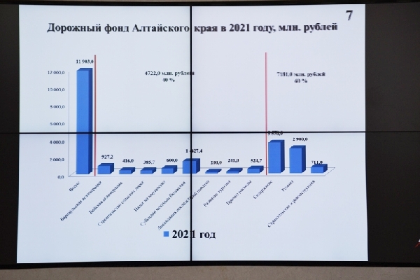 «Были реализованы крупные дорожно-строительные проекты в краевой столице, - рассказал министр. - В рамках нацпроекта «Безопасные и качественные автомобильные дороги» на территории города и Барнаульской агломерации отремонтирован 61 объект, плановый показатель нормативного состояния дорог составил 77%. К 2024 году этот показатель должен составить 85%. С учетом экономии в 60 млн. руб. при завершении строительства дороги на улице Попова, часть средств была направлена на реконструкцию улицы Ленточный бор - это 4,5 км четырехполосной дороги в двух направлениях. После монтажа освещения и ограждения трасса стала комфортной и безопасной для автомобилисто».