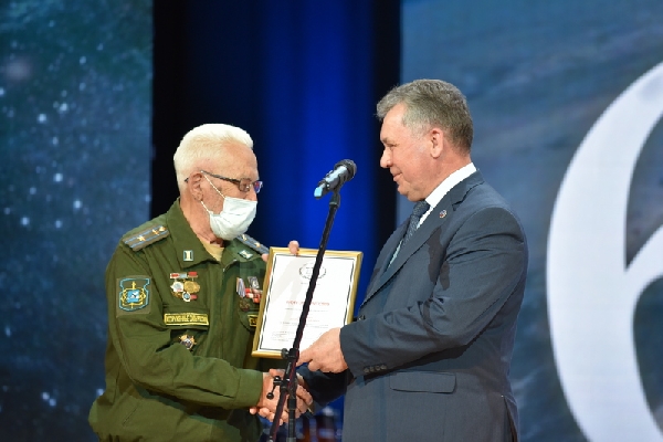Романенко отметил, что в зале находится ветеран космических войск Петр Ганьжин, который служил на Байконуре в момент запуска первого космического корабля «Восток». Спикер вручил ему Благодарность комитета Государственной Думы по обороне.