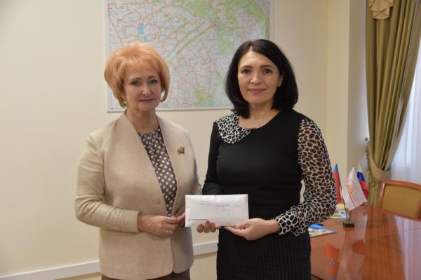 Сегодня, 22 декабря, председатель комитета АКЗС по социальной защите и занятости населения Ирина Солнцева передала руководителю регионального отделения Российского детского фонда Оксане Овчинниковой средства, которые депутаты собрали в рамках благотворительного марафона «Поддержим ребенка».
