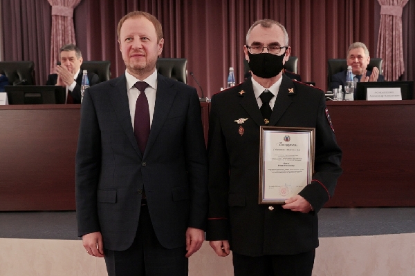 В завершении председатель АКЗС от имени депутатов вручил сотрудникам регионального ГУ МВД награды краевого Законодательного Собрания.