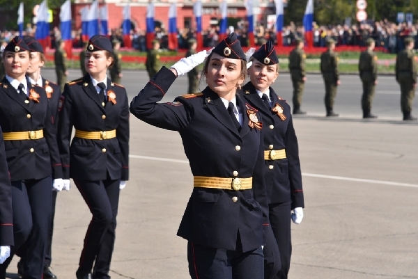 Знаменная группа из офицеров и курсантов Барнаульского юридического института МВД Российской Федерации, входящих в состав взвода почетного караула, пронесла по главной площади города Государственный флаг Российской Федерации и Знамя Победы. Участников торжественного шествия войск, всех земляков с 77-й годовщиной Великой Победы поздравил Губернатор Виктор Томенко.