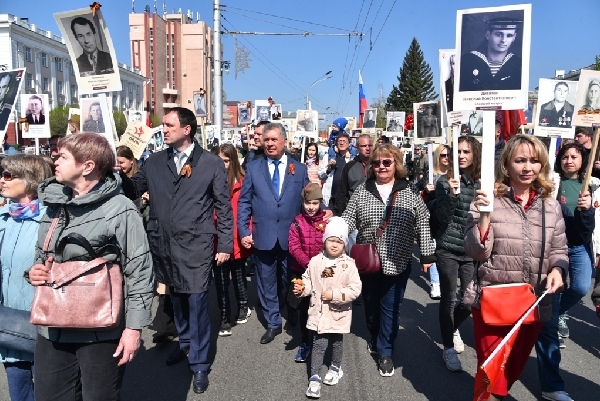Сегодня с портретами близких в памятном шествии по улицам города следуют дети, внуки, правнуки участников Великой Отечественной войны 1941-1945 годов. В колонне «Бессмертного полка» прошли Губернатор Алтайского края Виктор Томенко, председатель Алтайского краевого Законодательного Собрания Александр Романенко, глава города Вячеслав Франк, председатель Барнаульской городской Думы Галина Буевич, депутаты краевого парламента, представители ветеранских и общественных организаций, органов власти и силовых структур, военно-патриотических клубов и горожане. По данным администрации Барнаула, в парадном шествии приняли участие 52 тысячи жителей краевой столицы, еще порядка десяти тысяч человек стали зрителями прохождения колонны «Бессмертного полка».