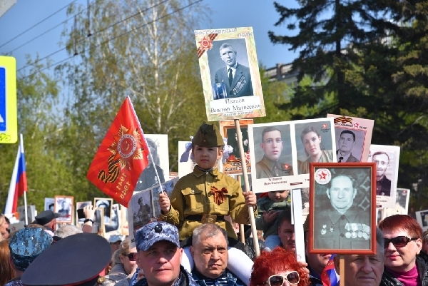 После торжественного шествия войск Барнаульского гарнизона с площади Советов стартовало шествие колонны «Бессмертного полка». Столица Алтайского края поддерживает проект в течение девяти лет. В последние два года из-за пандемии акция проходила в режиме онлайн.