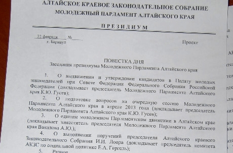 21 февраля состоялось первое заседание президиума Молодежного парламента Алтайского края в этом году.