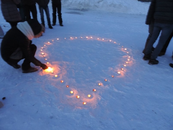 В Барнауле акция прошла на площади Ветеранов, ребята выложили из свечей слезу и прошла минута молчания.