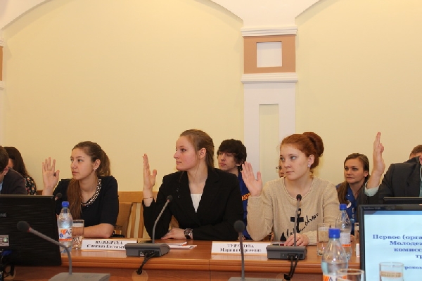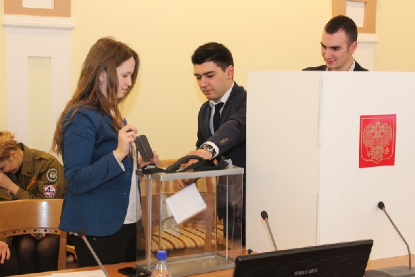 Приняв поздравления и напутственные слова, ребята приступили выборам руководителей Молодежного избиркома, порядок избрания которых аналогичен формированию руководящего состава Избирательной комиссии Алтайского края. Были подготовлены избирательные бюллетени, прозрачный ящик для голосования, а также ширма для обеспечения тайны волеизъявления. Решением членов комиссии единогласно были избраны: председателем - Антон Швенко (студент 3 курса юридического факультета АлтГУ), заместителем Константин Ерошин (студент 1 курса юридического факультета АлтГУ), секретарем комиссии Татьяна Сердечная (студентка 2 курса юридического факультета АлтГУ).