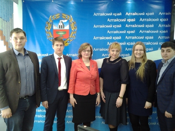 Представители Молодежного парламента Алтайского края Ашот Погосян, Наталья Прокудина, председатель комиссии Молодежного парламента Алтайского края по спорту и патриотическому воспитанию Константин Заречнев приняли участие в селектором совещании, прошедшем в Главном управлении образования и молодёжной политики.