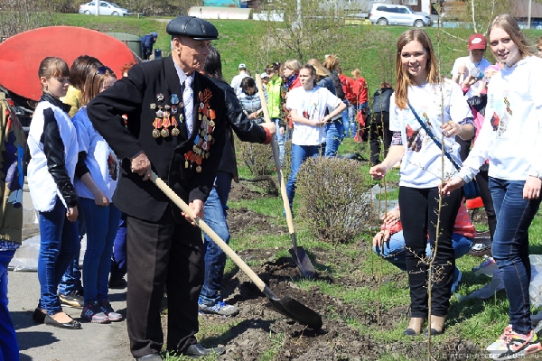 Благодаря хорошей погоде и отличному настроению удалось высадить более 70 саженцев сирени и яблони, символизирующих 70-летие Победы.