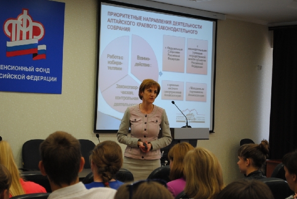 Татьяна Ильюченко в рамках занятия беседовала с детьми о парламенте нашего региона. Школьники узнали о его строении, функциях, стадиях законотворческого процесса и органах государственной власти Алтайского края. Слушателей заинтересовали ее спортивная деятельность и достижения.