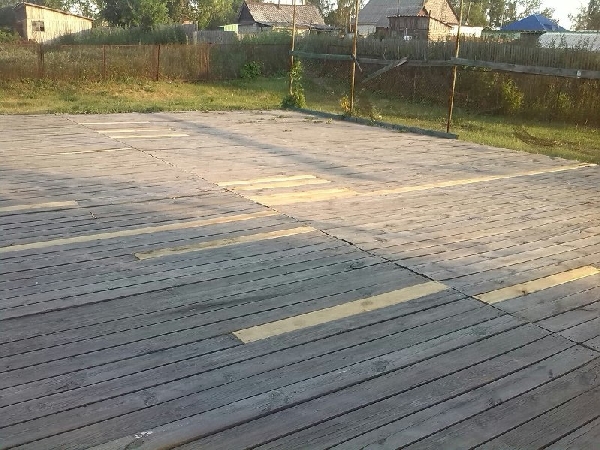 С помощью местных предпринимателей были приобретены строительные материалы, глава сельского совета выделил транспорт, а молодые парламентарии занялись погрузкой и разгрузкой материала. Старое покрытие было демонтировано, а новые полотна постелили, покрасили и обвели контур, что бы сделать границы волейбольной площадки. Стоит отметить, что средства на нанесение разметки Молодежным парламентом были получены в результате выигрыша в конкурсе в День Молодежи.