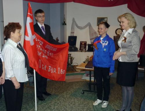 10 мая по поручению регионального отделения партии «Единая Россия» председатель комитета по социальной политике АКЗС, член фракции «Единая Россия» Елена Гергель передала школьному музею гимназии №80 г. Барнаула специально изготовленную копию Знамени Победы.