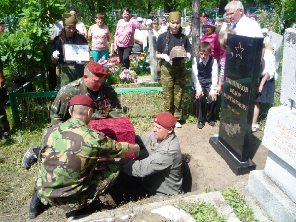 «Очень хорошо, что в вашем селе остались родственники солдата. Благодаря их решению и желанию, Федор Мартынович получил шанс вернуться в родное село. Долгим был его путь домой, - 73 года добирался... но над его могилой больше не будут выть чужие, холодные ветра, теперь о нем будут заботиться родные руки. Ваш земляк храбро сражался на передовой под Сталинградом. В смертельном бою героически погибла вся его рота. По количеству найденных гильз, можно сделать вывод: стреляли до последнего патрона», - рассказал присутствующим полковник запаса, участник боевых действий на Северном Кавказе, Председатель Совета Алтайского Республиканского отделения Всероссийской общественной организации ветеранов «Боевое братство» Александр Вилисов. Именно он организовал доставку урны, документов и личных вещей погибшего солдата.