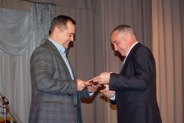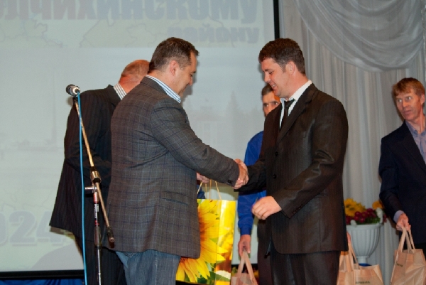 От депутатов Алтайского краевого Законодательного Собрания Всеволод Кондратьев вручил Почетную грамоту и памятный подарок главе крестьянско-фермерского хозяйства Дмитрию Горбову за заслуги в труде и активное участие в жизни района.