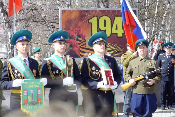 Они встретили праздничный кортеж, который доставил в район священную брестскую землю. Капсулу и вымпел «Эстафеты Победы» представители пограничного управления ФСБ России по Алтайскому краю передали первому заместителю главы администрации Ленинского района по жилищно-коммунальному хозяйству Александру Михалдыкину для последующей передачи в музей истории Ленинского района.
