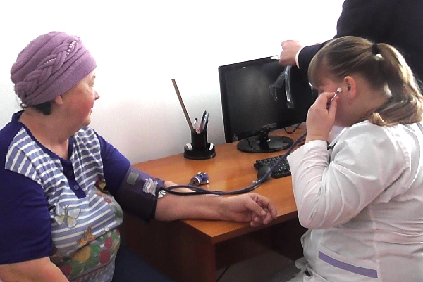 Пока устанавливали компьютер, Татьяна Сергеевна успевала принимать пациентов. Михаил Гаврилович пожелал ей поскорее освоить технику, а пациентам ФАПа - поменьше болеть.