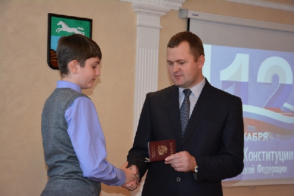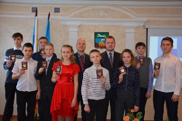 Вручение паспортов юным гражданам Российской Федерации предварило выступление начальника отдела Управления Федеральной миграционной службы по Алтайскому краю в Ленинском районе Дмитрия Блинова. Он рассказал школьникам об истории появления паспорта и напомнил о том, что еще в прошлом веке далеко не каждый имел право получить паспорт и стать официальным гражданином своей страны. После этого он вместе с главой администрации района вручил паспорта девяти жителям района.