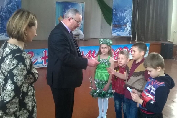 Депутат АКЗС, член фракции "Единая Россия" Анатолий Суворов поздравил маленьких и активных учеников школ своего округа с Новым годом.