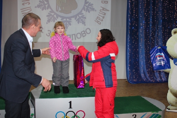Депутат фракции «Единая Россия» в АКЗС Алексей Кривенко учредил призы для самых юных участников краевой Олимпиады сельских спортсменов. Спортивный праздник прошел 17 февраля в Завьялово. На параде закрытия Алексей Кривенко вручил подарки Софье Ухтиненко из Ребрихи и Владу Боркову из Завьялово.