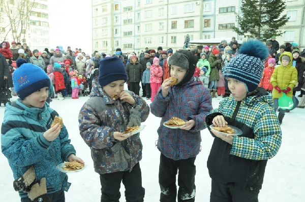 Масленичные гуляния в микрорайоне «Переезд» города Бийска прошли с небывалым размахом. Десятки людей пришли посмотреть праздничную программу, их ожидали ряженые, танцы и конкурсы, и, конечно, сжигание чучела Марены (Зимы).