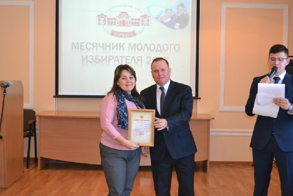 Накануне в зале заседаний администрации Железнодорожного района г. Барнаула состоялась церемония награждения победителей и призеров мероприятий, проходивших в рамках Дня молодого избирателя.