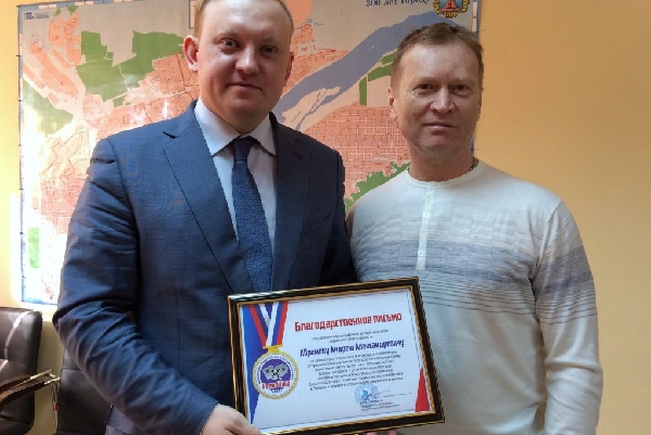 Председатель Федерации пауэрлифтинга Алтайского края Александр Смирнов вручил депутату фракции «Единая Россия» в АКЗС Андрею Абрамову благодарственное письмо «За оказанную поддержку и помощь в проведении Открытого регионального турнира по классическому жиму лежа».
