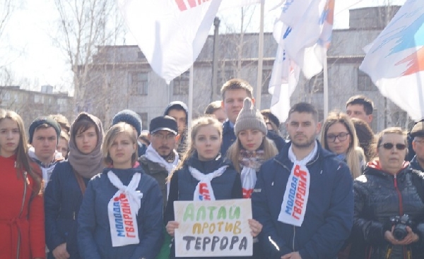 Они были организованы Молодежным парламентом города. Особенно массовым стал митинг на бульваре Петра. Все выступающие выражали свой протест против преступной деятельности террористов. Среди участников митинга были депутат АКЗС - почетный гражданин Бийска - Татьяны Ильюченко, председатель Бийского отделения Союза ветеранов ВДВ и войск специального назначения Евгений Татарников, а также представители молодежных организаций и объединений города.