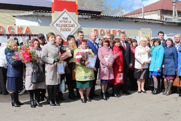 В с. Родино состоялось торжественное мероприятие по занесению лучших граждан района на Доску почета. Традиции открытия обновленной Доски почета уже четыре года. Работа по рассмотрению кандидатур начинается с 1 марта и завершается в день весны и труда 1 мая. В этот день портреты 18 граждан и четырех трудовых коллективов сменили своих предшественников.