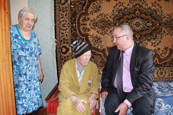 Анатолий Суворов преподнес супругам букет красных гвоздик и небольшой памятный подарок, пожелал Семену Федоровичу и Январине Ильиничне крепкого здоровья, долгих лет жизни. Семену Федоровичу 8 сентября исполнится 91 год.