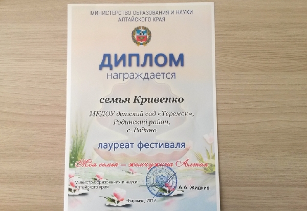 Алексей Кривенко стал лауреатом конкурса «Моя семья - жемчужина Алтая»