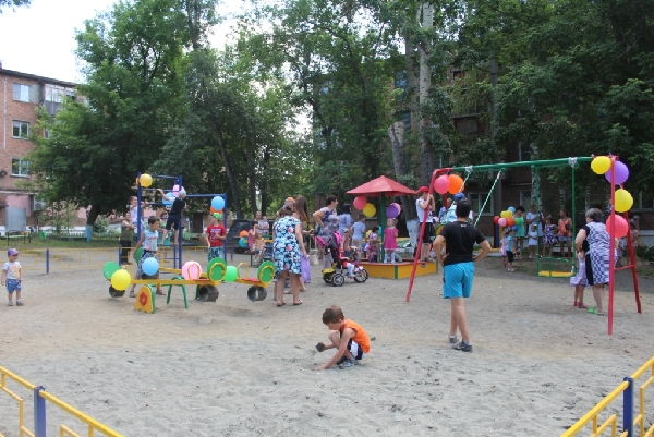 Площадку с малыми формами закупили, территорию благоустроили и огородили, завезли песка, вырезали старые кустарники, жители покрасили лавочки и даже погреба. Открытие площадки праздновали всем микрорайоном, для детей была организована развлекательная программа с конкурсами и призами.
