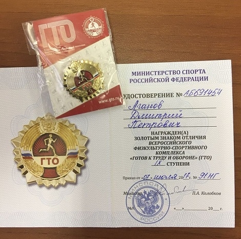 Депутат АКЗС Дмитрий Аганов получил золотой значок ГТО