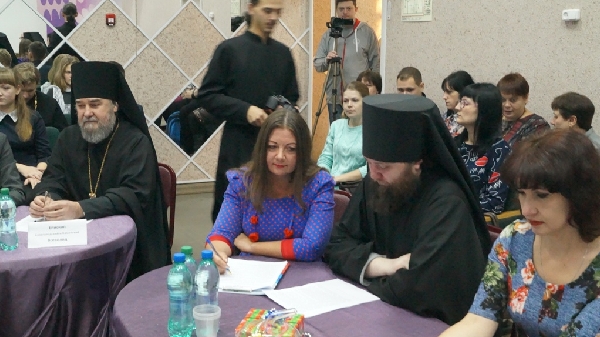 Преподаватели школ сообщили о том, какие уроки проходят в учебных заведениях и какие вопросы больше всего привлекают интересы детей. А школьники из театральной студии «Образ» подготовили миниатюры, стихи и песни на религиозную тематику.