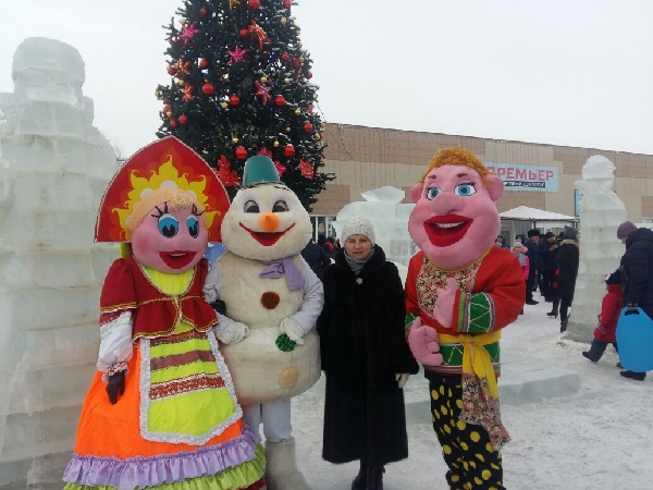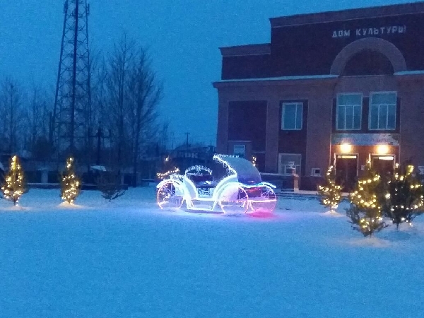 Площадь украсили разными снежными и ледяными фигурами: символом уходящего и предшествующего года, для юных жителей села и взрослого населения впервые художниками-умельцами сделаны художественно - оформленные горки.