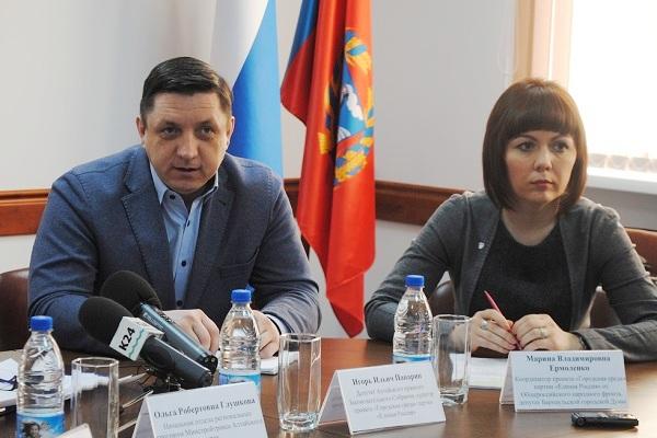 26 января в Министерстве строительства, транспорта, жилищно-коммунального хозяйства региона прошла пресс-конференция, посвященная реализации проекта «Формирование комфортной городской среды» в Алтайском крае. О планах проекта в текущем году журналистам рассказали начальник отдела региональных программ Минстройтранса Алтайского края Ольга Глушкова, координатор партийного проекта «Единой России» «Городская среда», депутат АКЗС Игорь Панарин, сопредседатель Регионального отделения ОНФ, координирующий реализацию проекта в Барнауле Марина Ермоленко и руководитель Регионального исполкома ОНФ Сергей Войтюк.