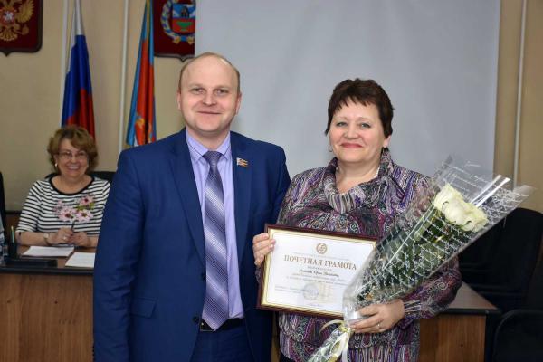 По окончании выступления Николай Якушев вручил Почетную грамоту Алтайского краевого Законодательного Собрания аудитору Контрольно-счетной палаты города Ирине Аниконовой.
