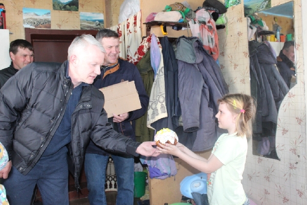 Юрий Витальевич поздравил семью с православными праздниками и вручил небольшой подарок - продуктовый набор от ЗАО «Алейскзернопродукт».