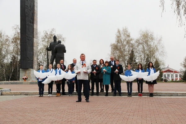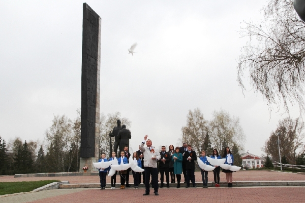 В Барнауле партийцы Алтайского регионального отделения «Единой России» провели патриотическую акцию «Птица мира и добра». На Мемориале Славы депутаты «Единой России» во главе с секретарем РО Партии, председателем АКЗС Александром Романенко выпустили в небо белых голубей.