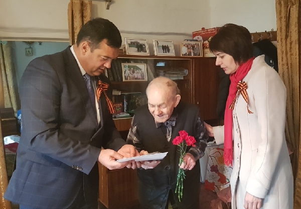 Георгий Георгиевич в этом году отпраздновал 100 летний юбилей, в 1939 году он призвался на войну, служил в артиллерийских войсках, дошел до Вены и был удостоен ордена Красной звезды. Отметим, что поздравить ветеранов пришли и 6-летние воспитанники детского сада, которые читали стихотворения и исполняли песню.