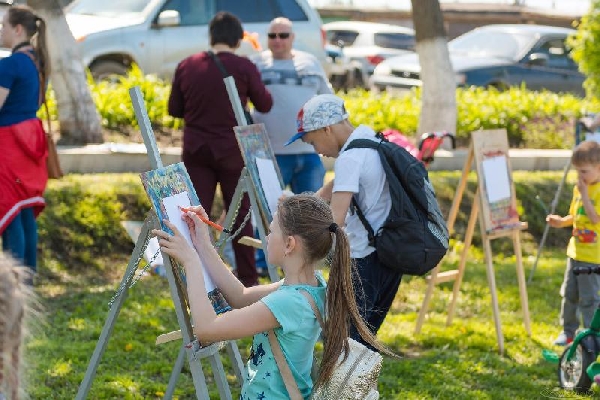 В этот день ребята пришли на стадион со своими родителями. Благодаря организаторам, все игровые площадки в этот день работали бесплатно. Можно было поиграть в настольные игры из дерева (их делают в с. Залесово), понаблюдать за соревнованиями роботов, сфотографироваться в волшебном шаре. Заринское отделение «Молодой Гвардии «Единой России» организовало конкурс рисунков на мольбертах.