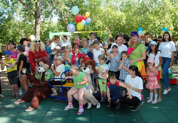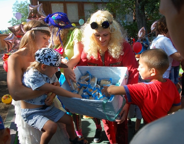 В честь праздника на детской площадке выступила студия детского танца «Пти-дэнс». Игровую программу для ребят провели сотрудники детской игровой комнаты «На-фа-ня». А в конце праздника всех угостили мороженым.