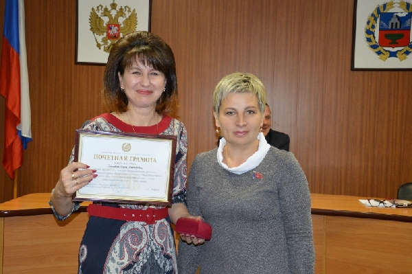 Депутат АКЗС Наталья Цепенко в приветственной речи сказала, что своих учителей люди помнят всю жизнь и вспоминают о них с благодарностью. Она выразила признательность коллегам за плодотворный труд и вручила награды краевого парламента - Почетные грамоты АКЗС начальнику отдела учета и отчетности комитета по образованию и делам молодежи администрации Кулундинского района Елене Струценко и учителю ОБЖ Кулундинской средней школы №3 Евгению Щербанову. Благодарственным письмом АКЗС поощрена воспитатель детского сада №7 «Радуга» Людмила Михедова.