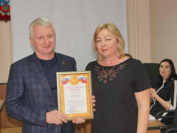 Кроме того, на совещании начальник управления социальной защиты населения по городу Алейску и Алейскому району Марина Алистратова вручила благодарственное письмо Юрию Матвейко за высокую социальную ответственность и весомый вклад в развитие благотворительности в городе Алейске и активное участие в традиционных благотворительных акциях «Соберем детей в школу» и «Новогодний подарок».