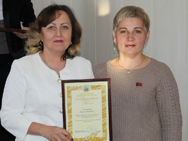 Перед началом работы сессии Наталья Цепенко вручила награды краевого парламента представителям сфер здравоохранения, сельского хозяйства, железнодорожного транспорта, энергетики, пенсионерам. 17 человек поощрены благодарственными письмами, три человека удостоены почетных грамот АКЗС. Депутат поблагодарила награжденных за добросовестный труд, пожелала здоровья, благополучия и успехов во всех делах.