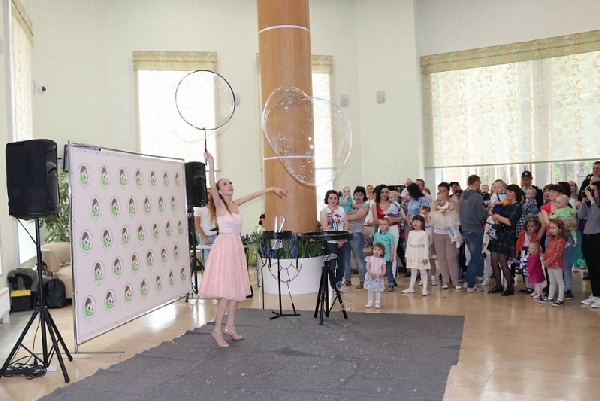 На празднике была организована фотовыставка детей, которые находятся на лечении в центре «ДАР», шоу мыльных пузырей, концертная программа, детей веселили аниматоры и ростовые куклы.