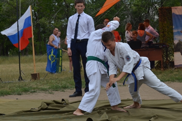 Показательные выступления зрителям представили члены клуба «КАБУДО», спортсмены - гиревики и сами обладатели голубых беретов. Местные артисты приготовили художественные номера.