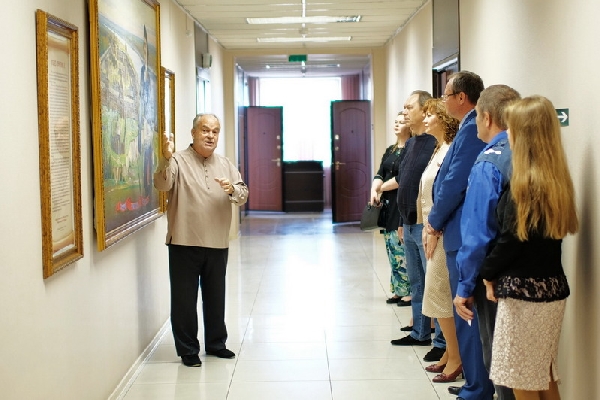 Заместитель попечительского совета Демидовского фонда, депутат АКЗС Ирина Теплова вместе с директором фонда Виктором Буланичевым и членом Союза художников России, председателем бийского отделения Союза Сергеем Иваненко передала городу картину, посвященную истории создания Бийска.