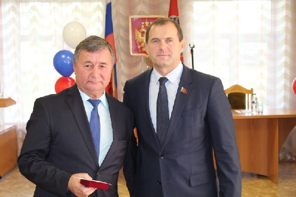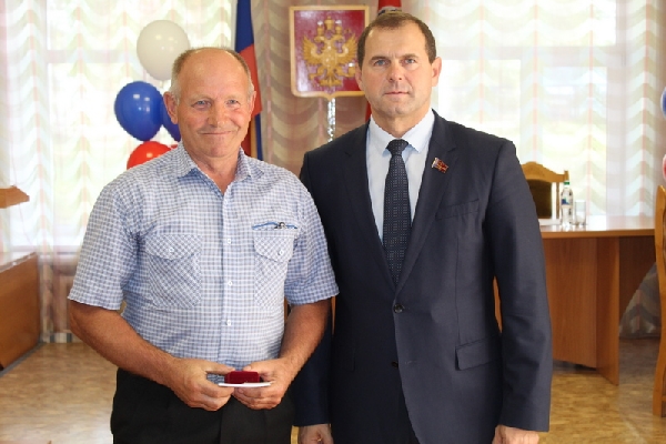 Зампредседателя комитета АКЗС по аграрной политике и природопользованию Вадим Смагин поприветствовал муниципальных коллег, вручив активистам депутатского корпуса заслуженные награды Алтайского краевого Законодательного Собрания и памятные знаки «80 лет представительной власти Алтайского края».